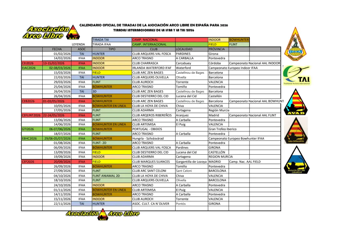 • Calendario tiradas AAL 2025